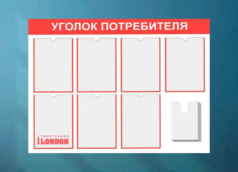 В типографии «Лондон» вы можете заказать уголок потребителя разного Pin-Up сложности. Профессиональная команда выполнит любое оригинальное решение по желанию заказчика